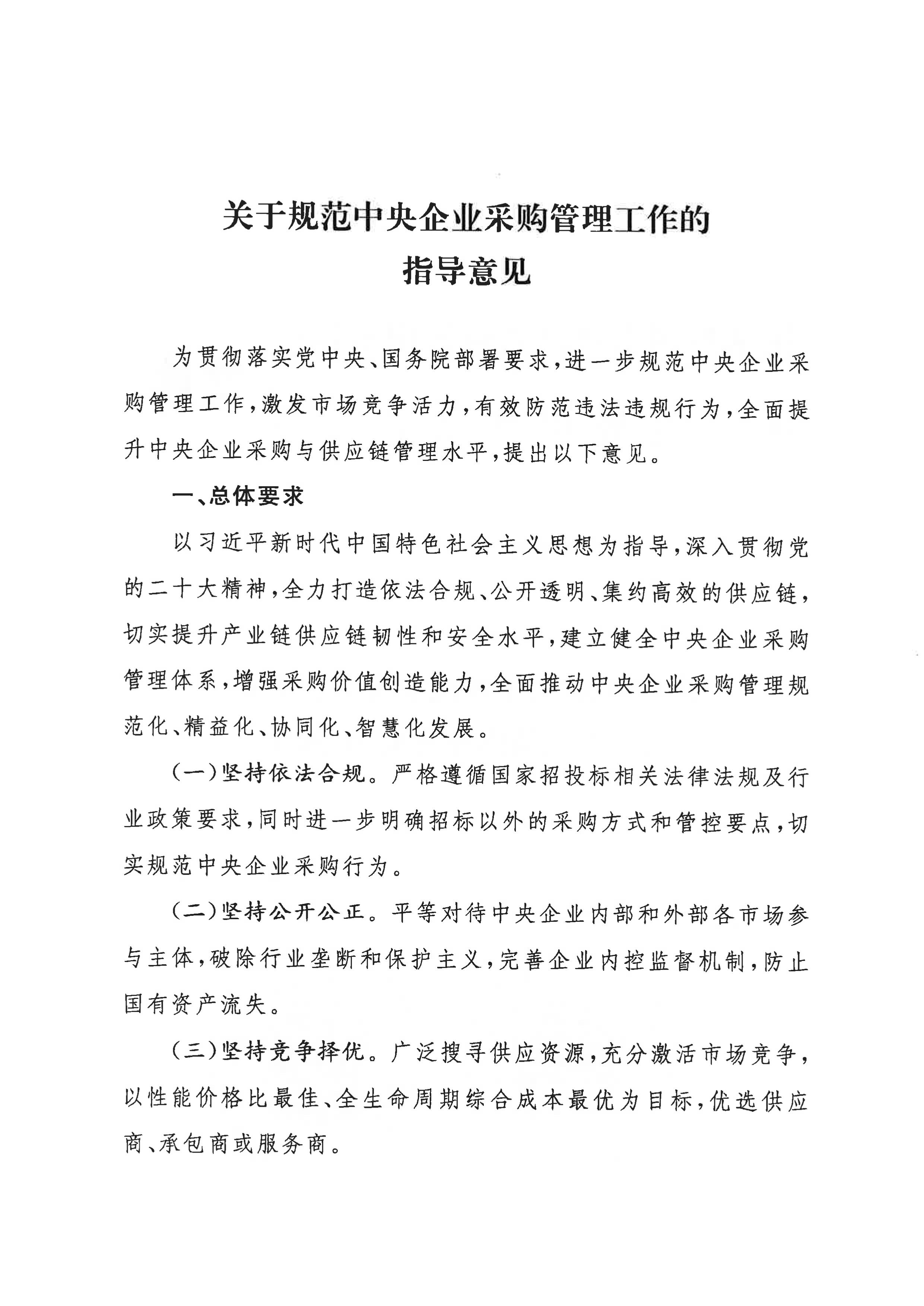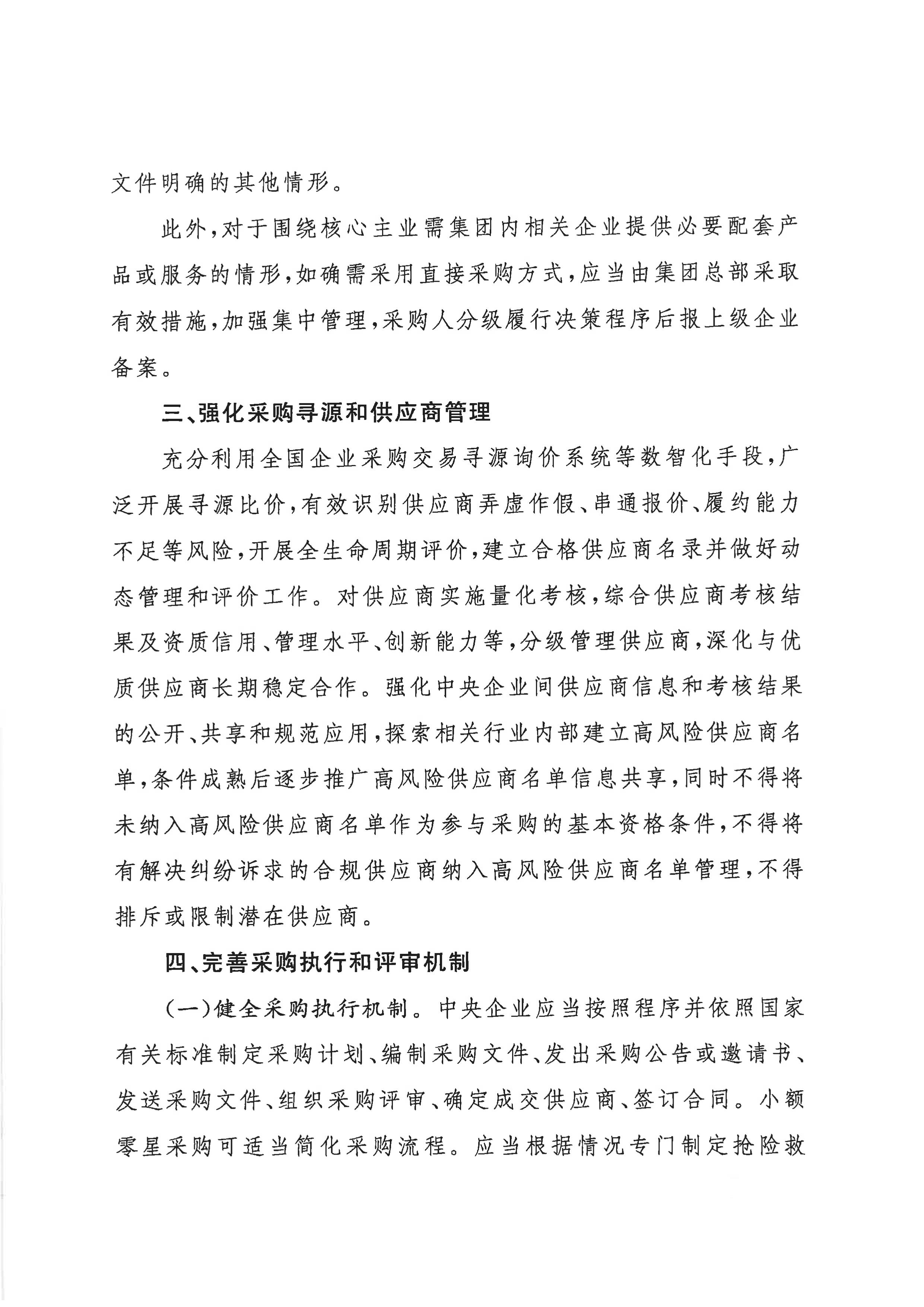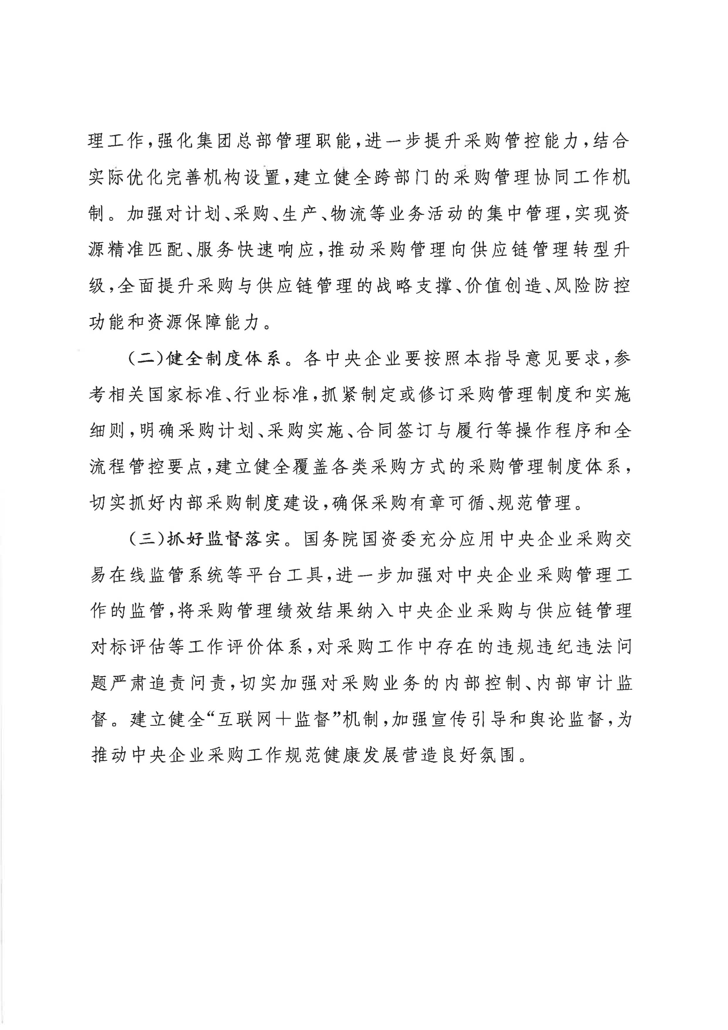 關(guān)于印發(fā)《關(guān)于規(guī)范中央企業(yè)采購管理工作的指導意見》的通知