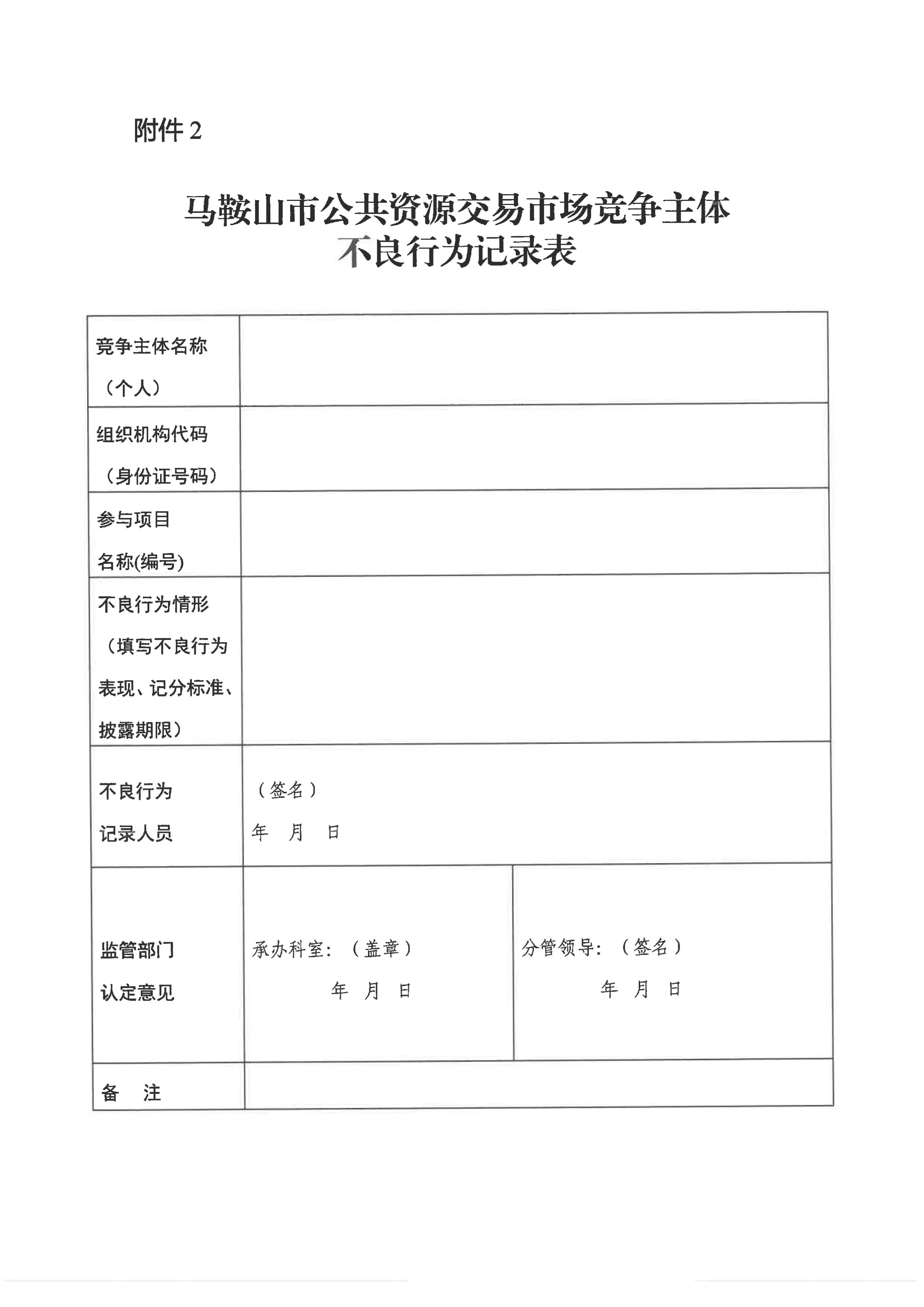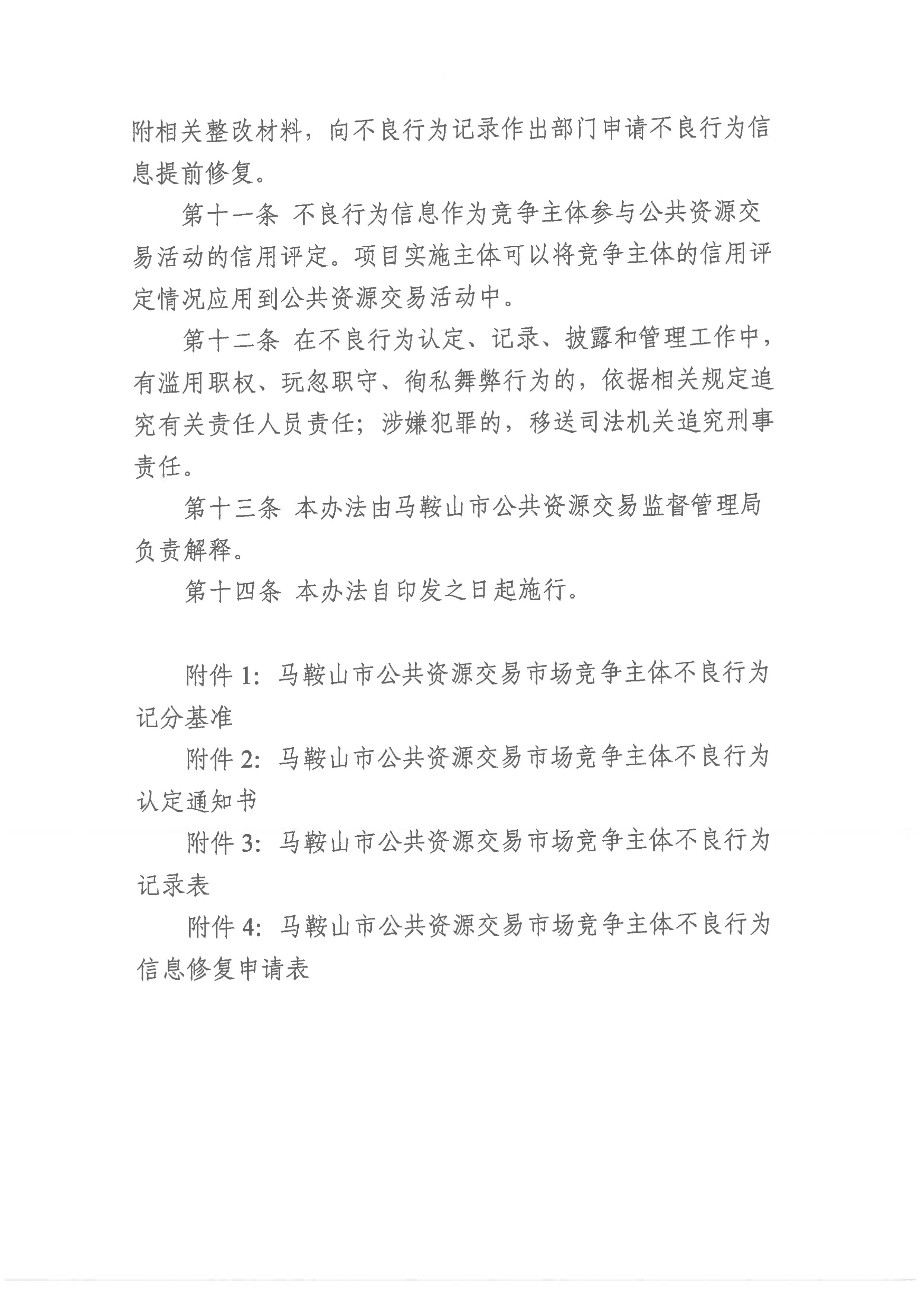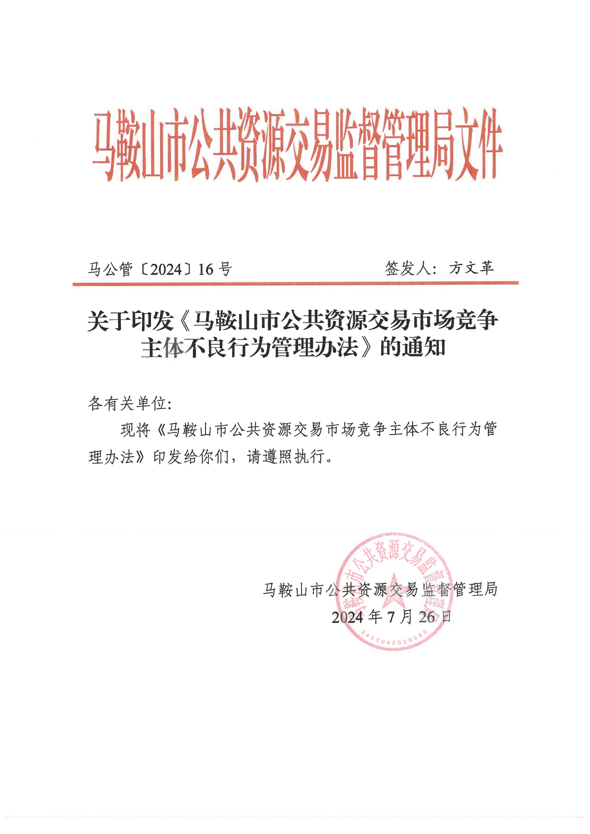 關(guān)于印發(fā)《馬鞍山市公共資源交易市場競爭主體不良行為管理辦法》的通知